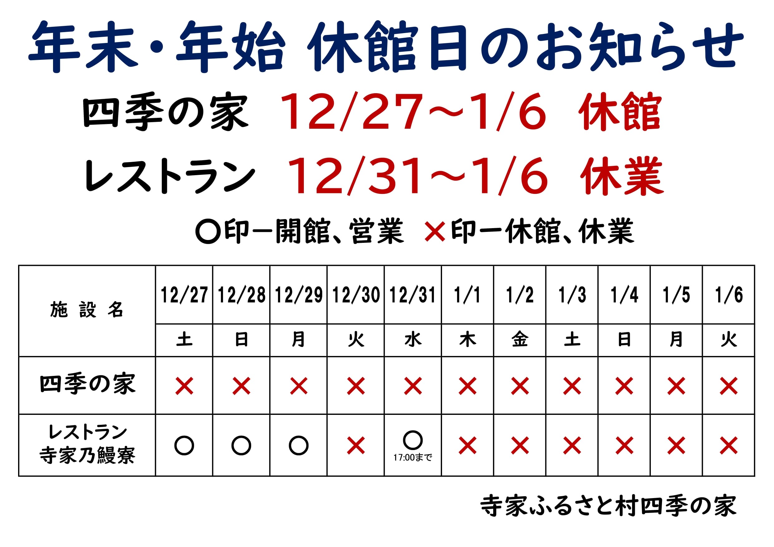 四季の家は12月27日(土)~1月6日(火)まで休館させていただきます。