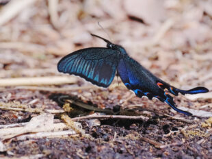 羽化して間もないカラスアゲハ雄が吸水しに飛んできました。 (画像提供 M.I 様)