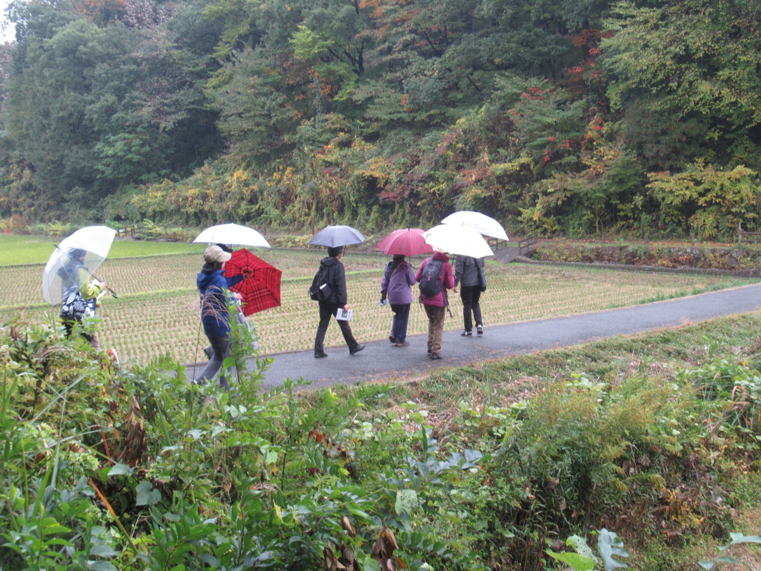 稲刈り、天日干しのはざ掛けの風景の中、9月28日は西山レヂヲ先生の「秋の自然と生き物観察会」でした。