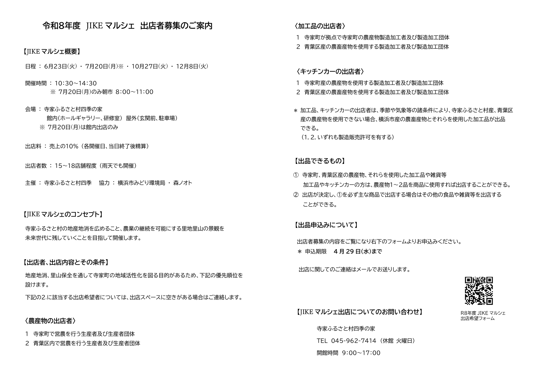令和8年度 JIKEマルシェ出店者募集のご案内