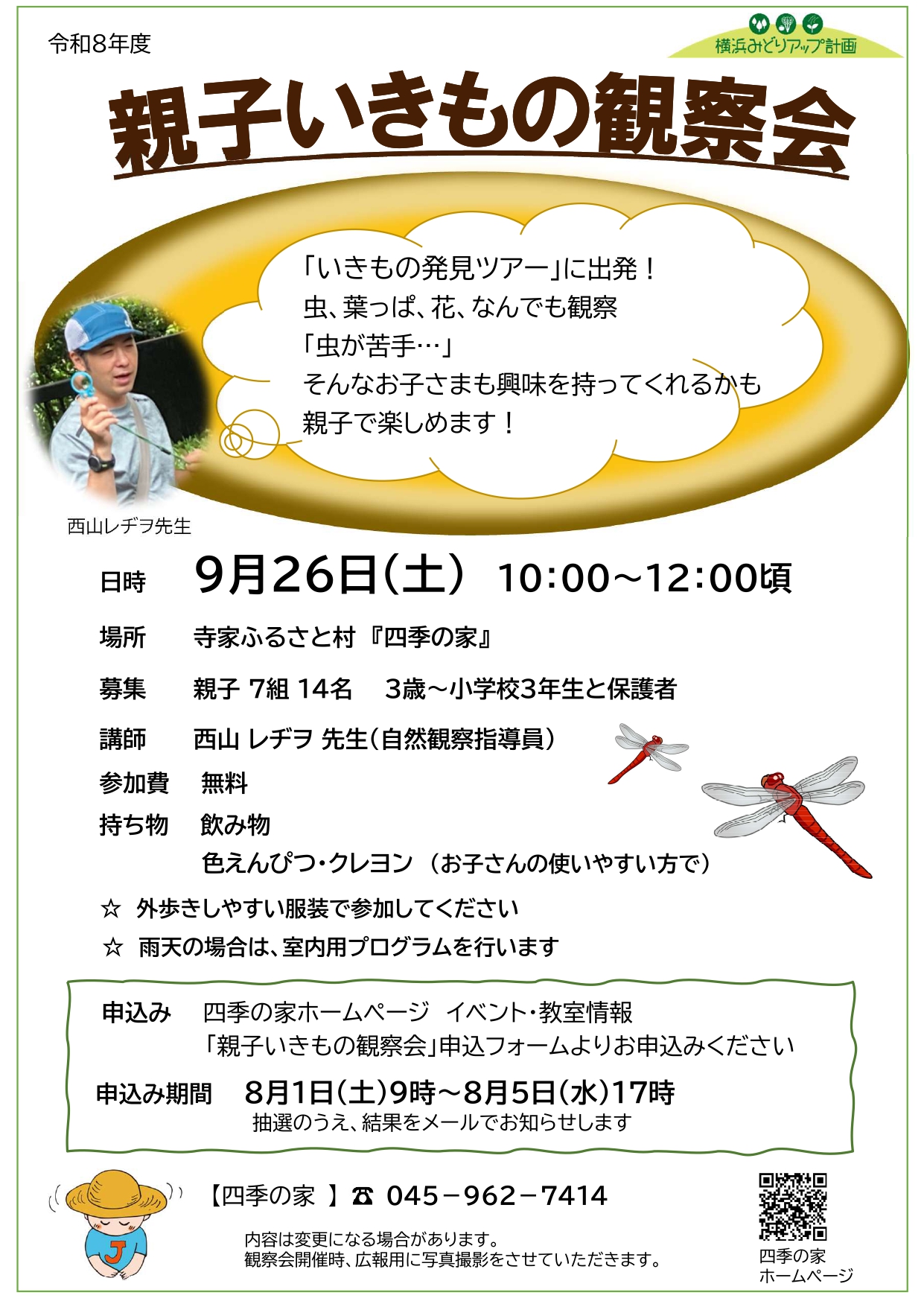 毎年大好評の小さなお子さまが参加できる自然観察会です。 |